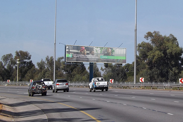 Situated on Albertinah Sisulu Drive (R21) facing traffic traveling to and from Pretoria to O.R Tambo International airport.